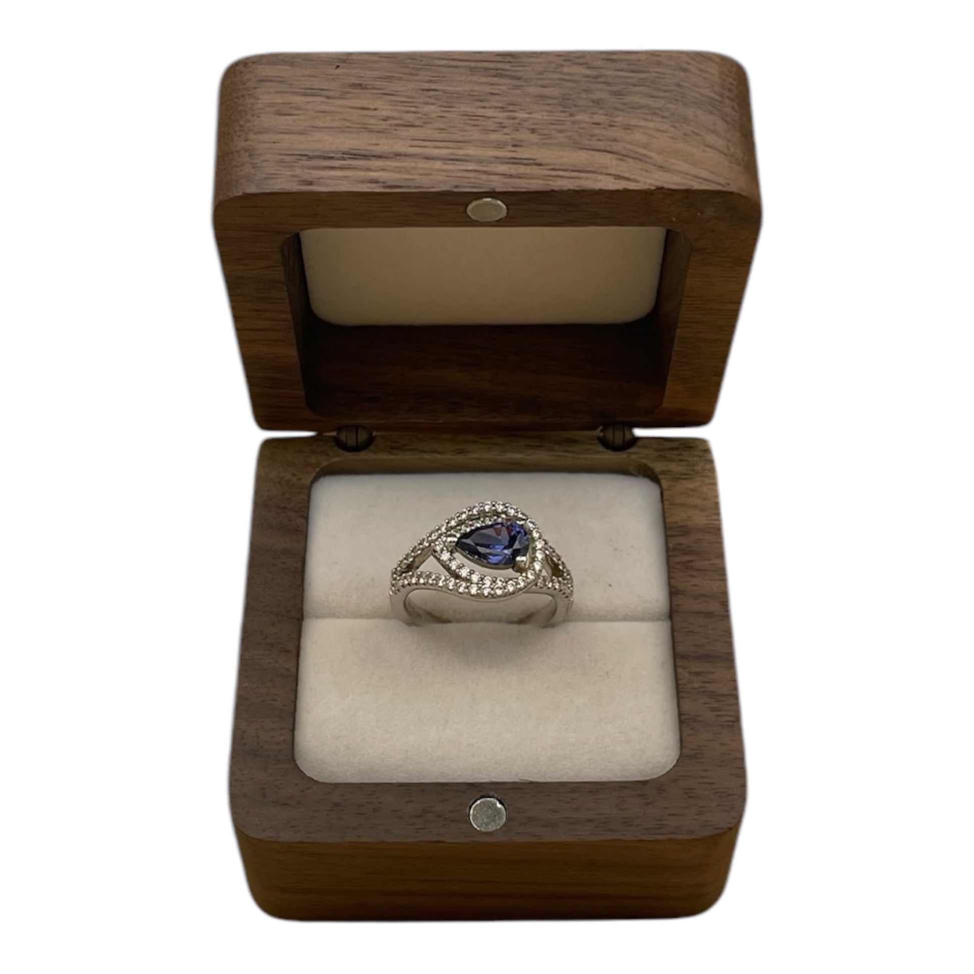 Anillo hermoso de tanzanita de 0.80 en la piedra central y adornado con diamantes 0.1 CT cada uno