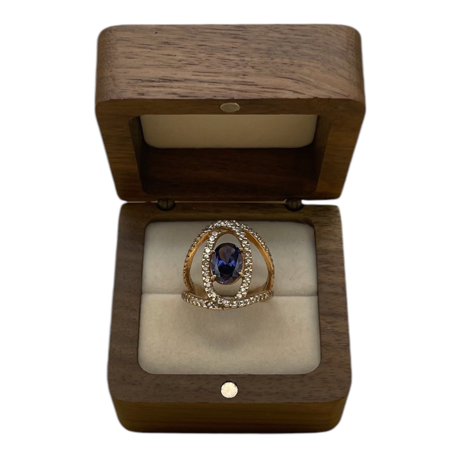 Le presentamos un anillo único, completamente hecho a mano de plata pura. En el centro de la joya se encuentra una tanzanita natural de color azul oscuro y violeta intenso de 3,40 quilates con corte ovalado, rodeada de diamantes blancos que añaden brillo y elegancia a la composición general. El diseño es muy original y moderno, convirtiendo esta pieza en una obra de arte contemporánea.