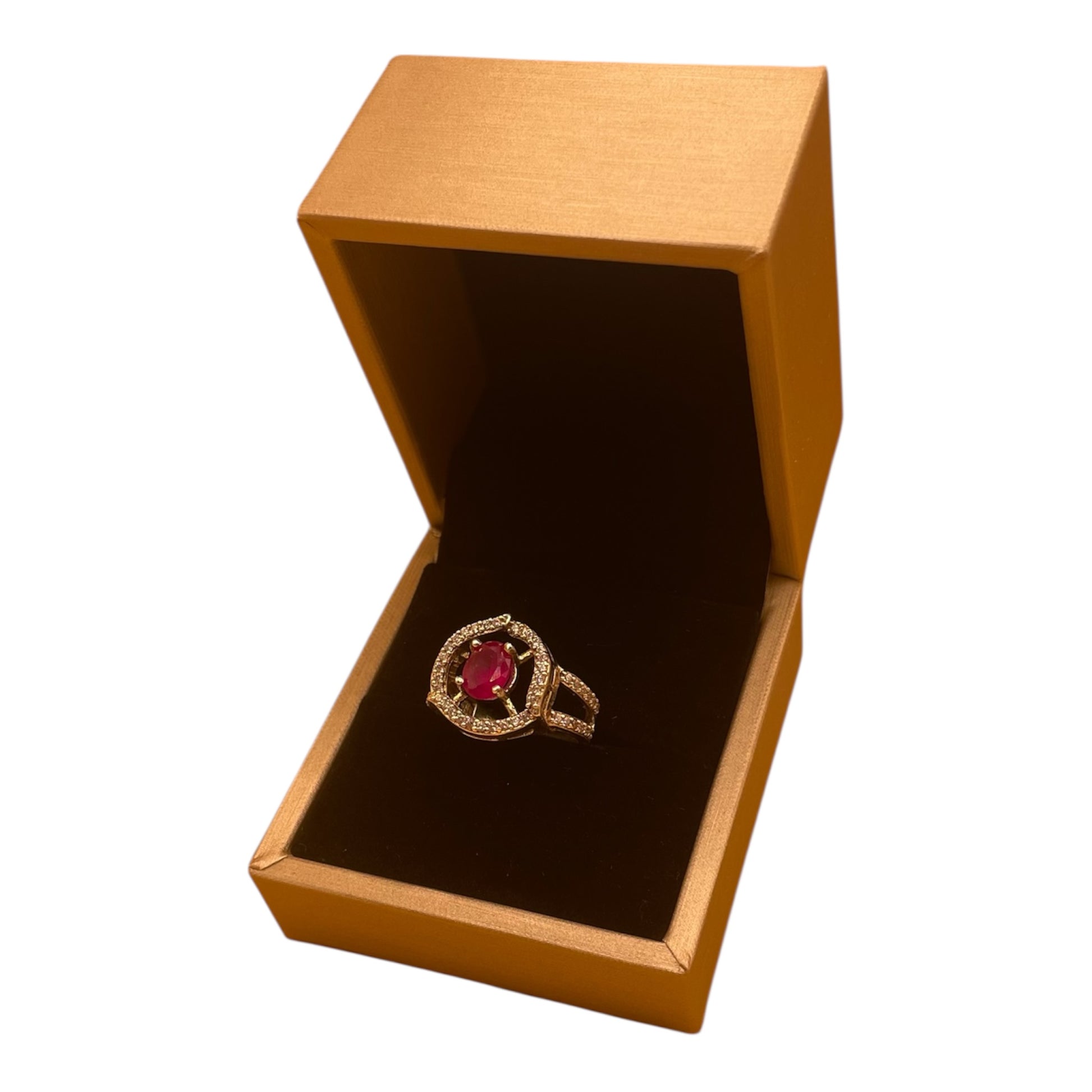 - Rubí rojo corte oval - 1.56 ct, símbolo de pasión y energía vital.