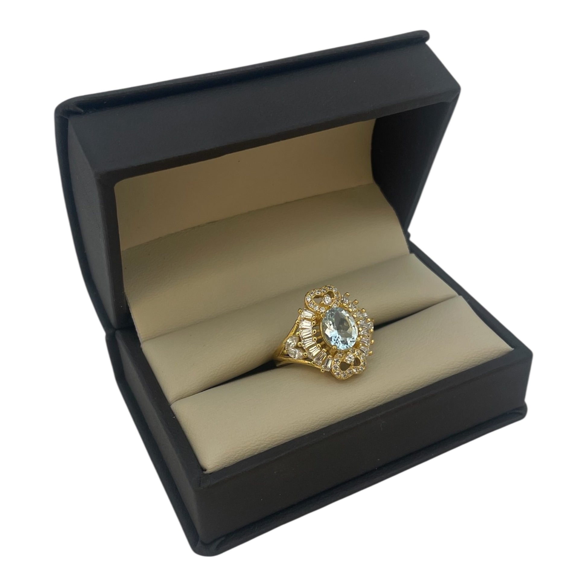 Oceánica — Anillo extravagante con aguamarina y zafiros blancos