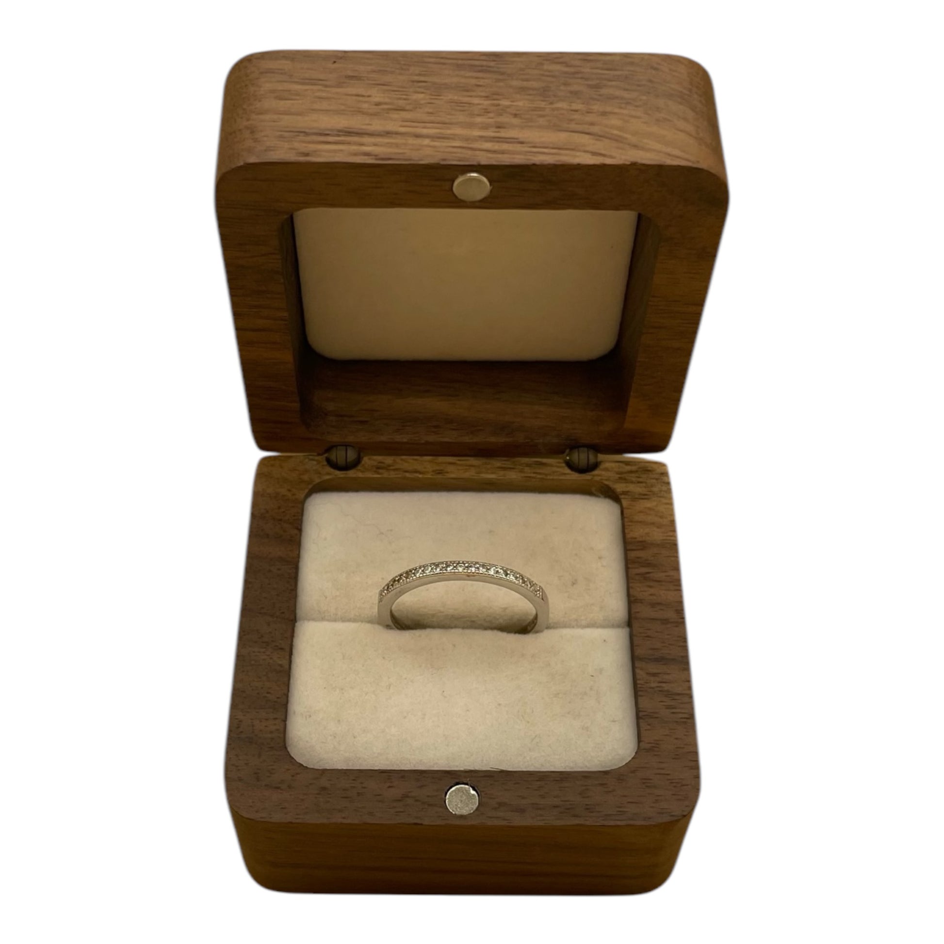 • Piedras: completamente adornado con zafiros blancos en estilo pavé, sumando un total de 0,21 ct