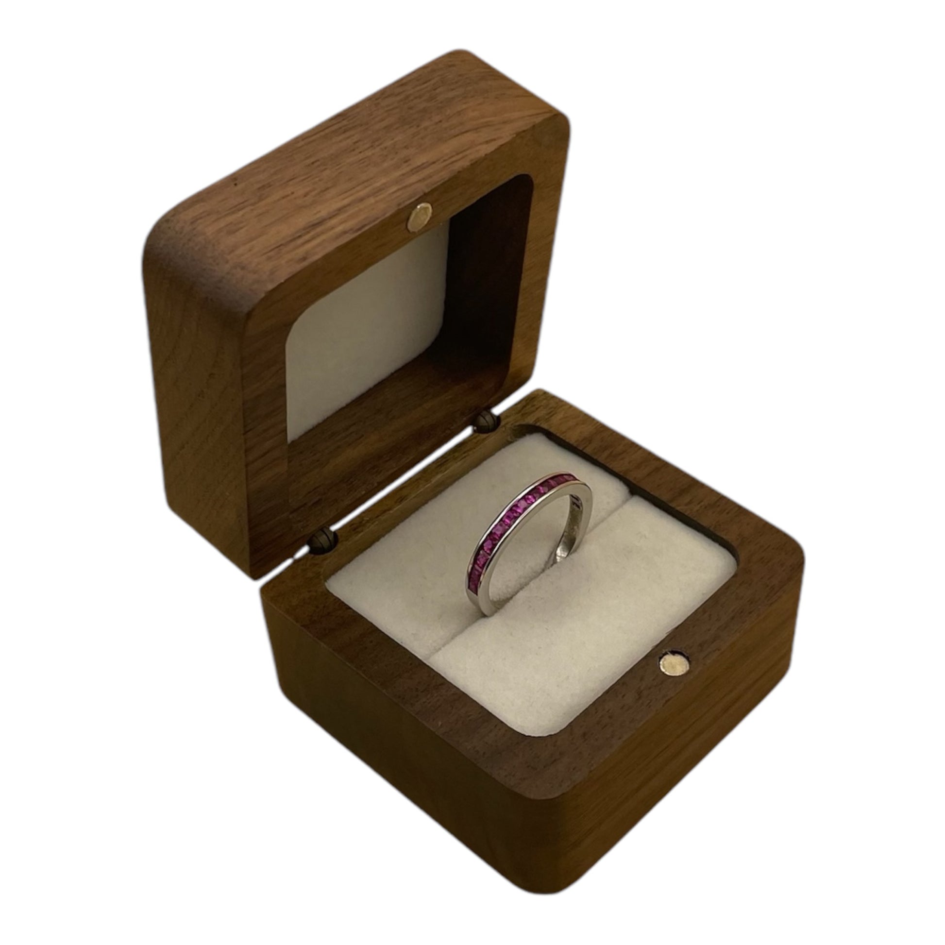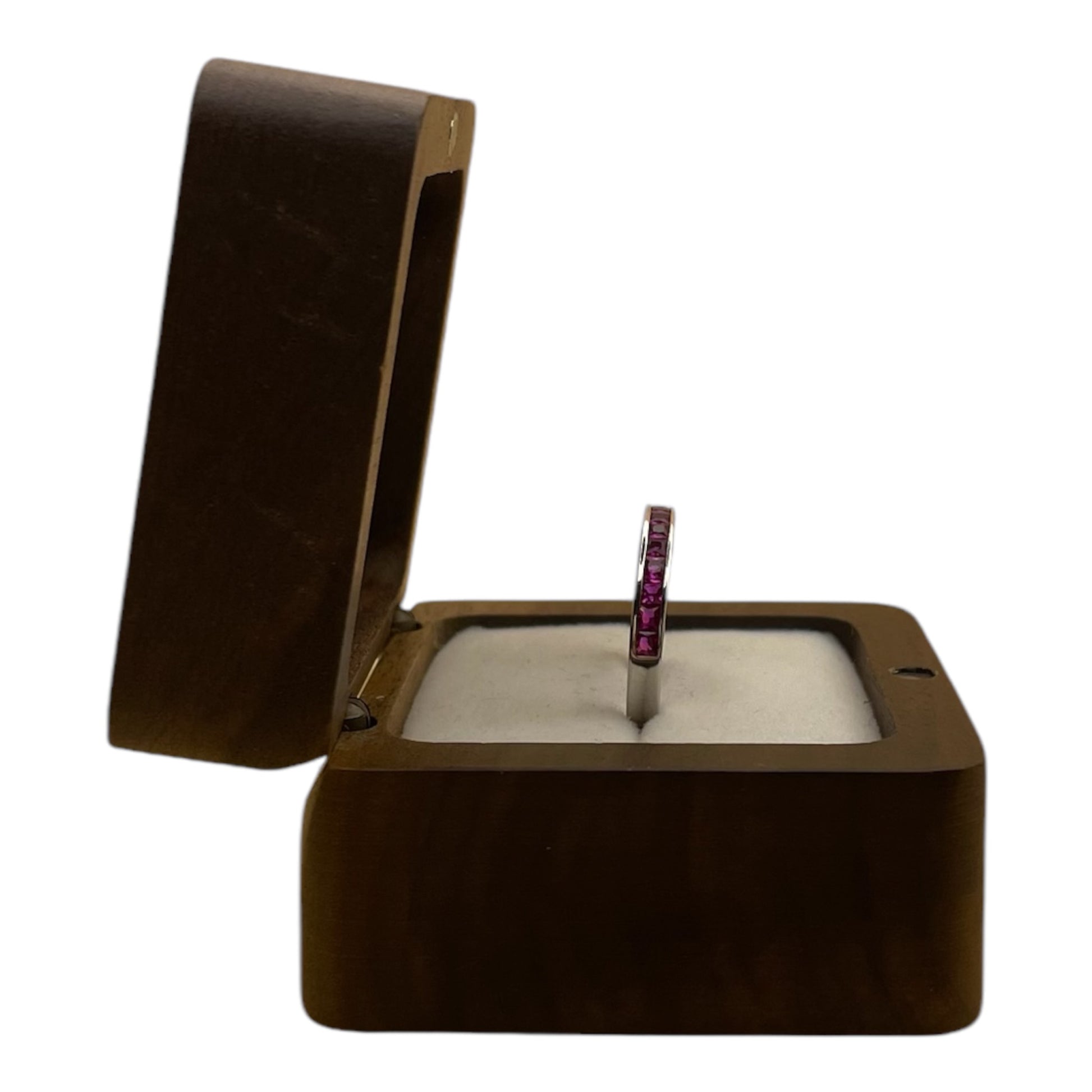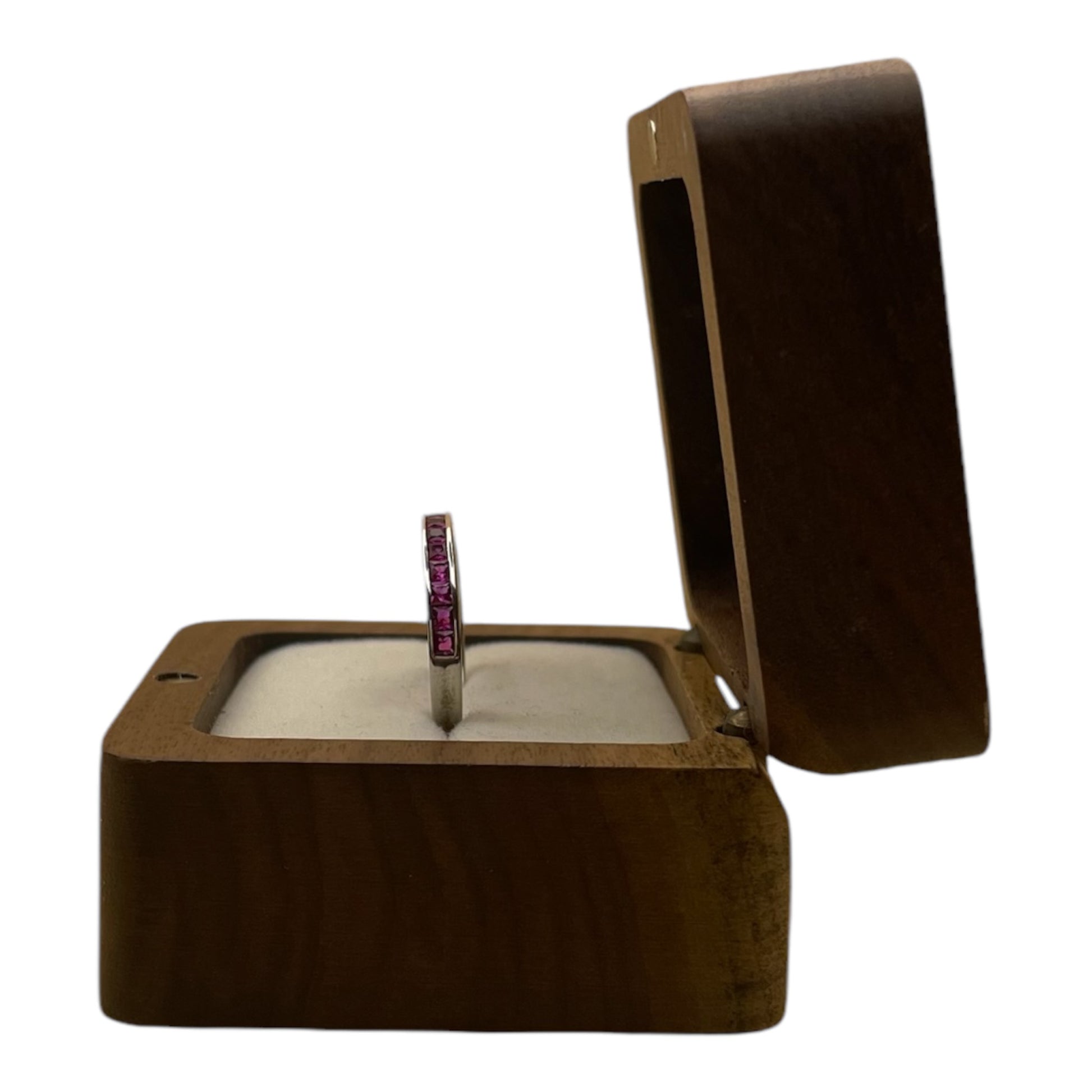 • Diseño: anillo completamente adornado con granates rojos de talla princesa, cada uno de 0,30 ct