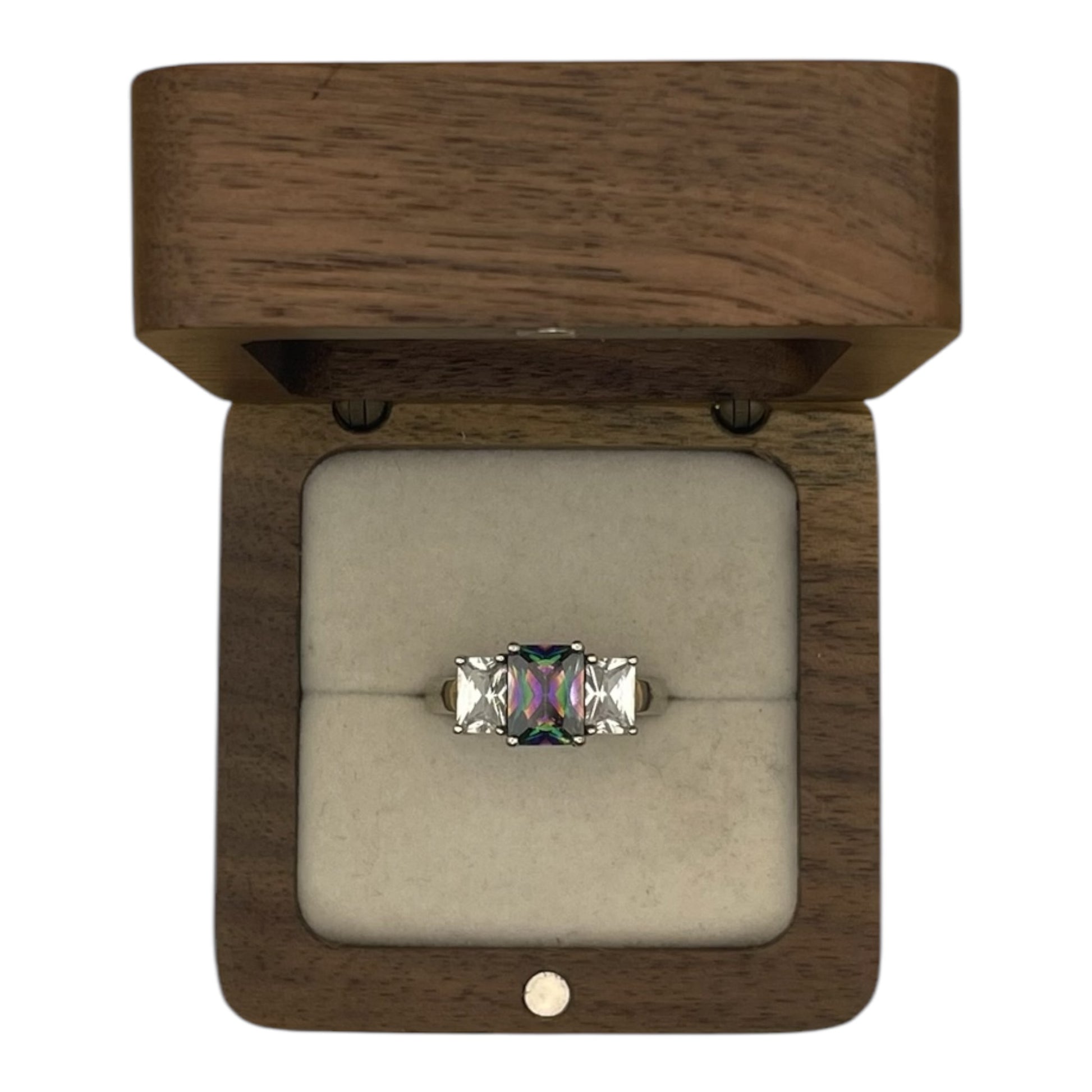 • Piedra central: topacio místico de talla esmeralda de 1,25 ct