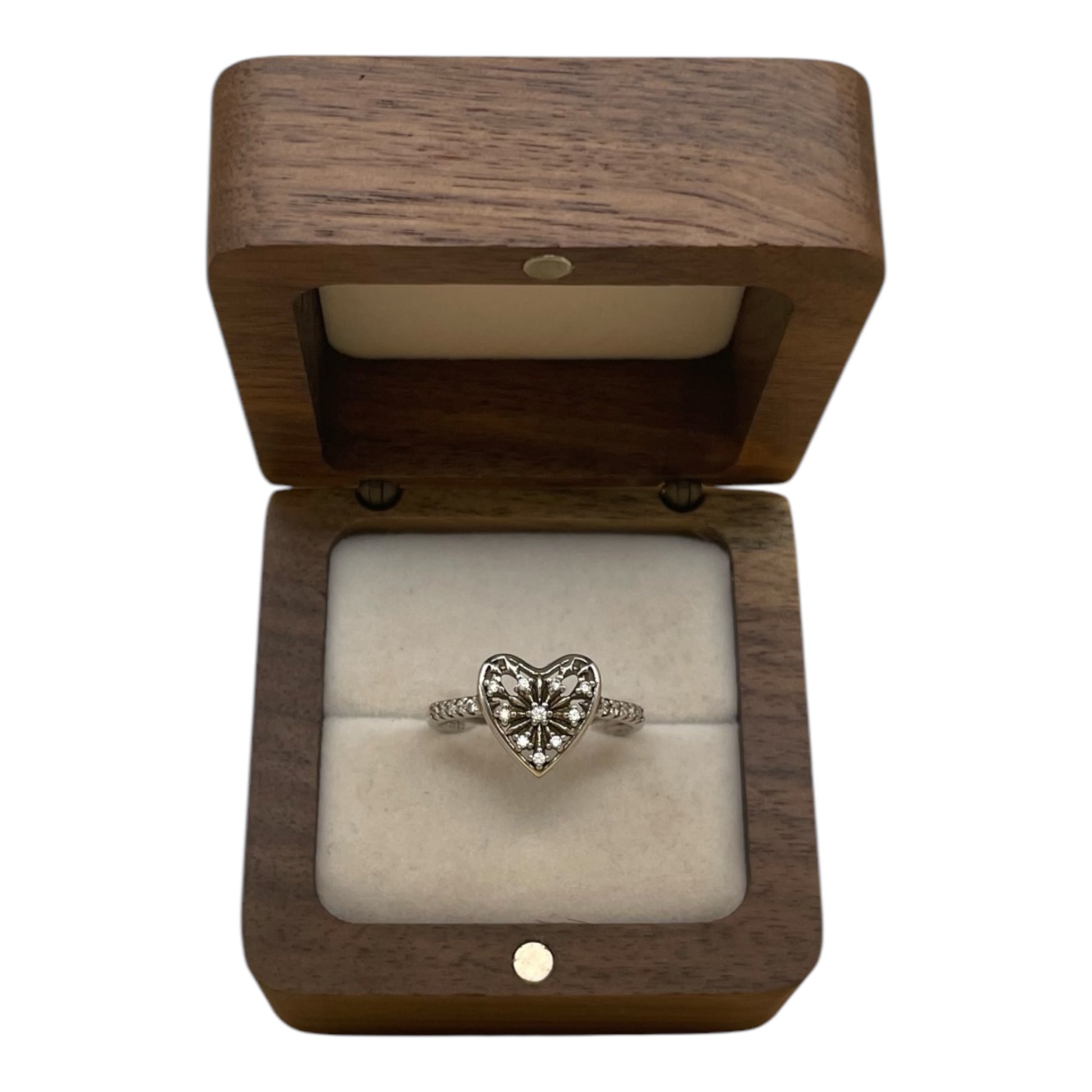 • Diseño: anillo en forma de corazón en estilo pavé