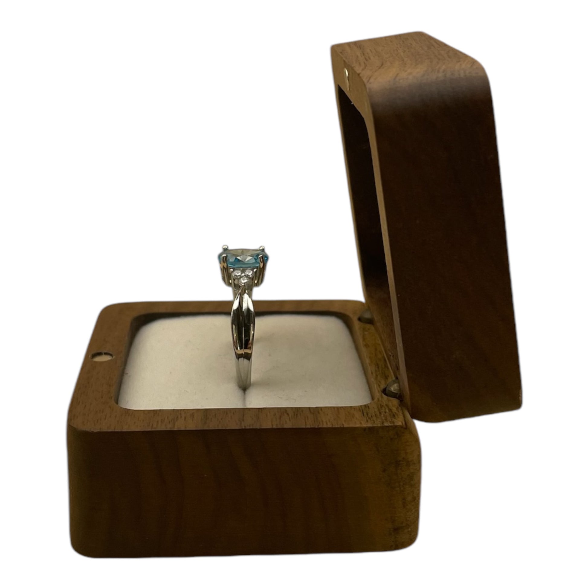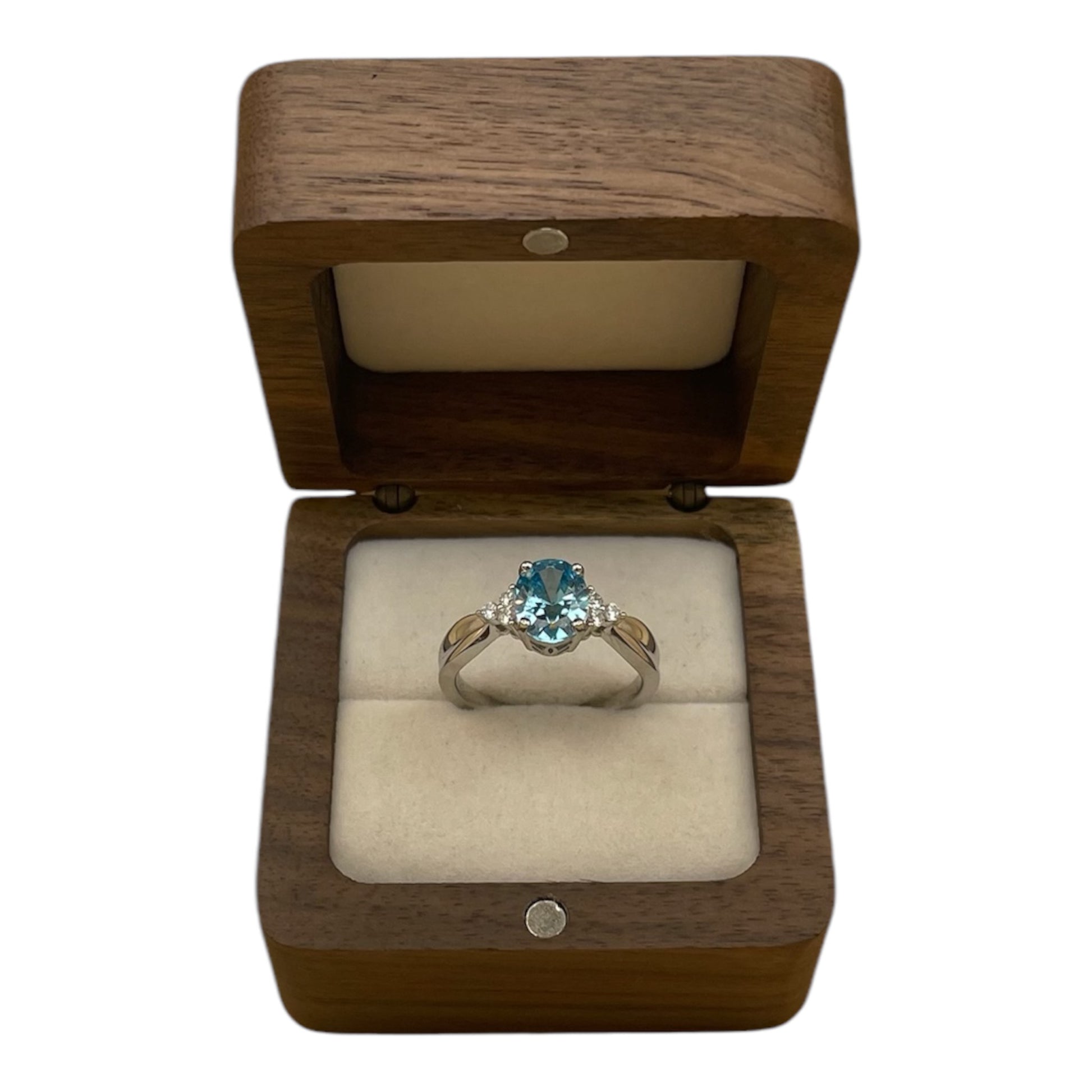 Les presentamos un exquisito anillo de la colección «Esplendor Azul», creado para destacar los radiantes tonos del topacio azul y la sofisticación del diseño contemporáneo. En el centro de esta joya se encuentra un topacio azul de 2,04 ct, flanqueado por zafiros blancos de 0,15 ct en total a los lados, que realzan su brillo y elegancia. El anillo está elaborado en plata pura de ley 925, lo que garantiza su durabilidad y nobleza, convirtiéndolo en un símbolo de estilo refinado y buen gusto.