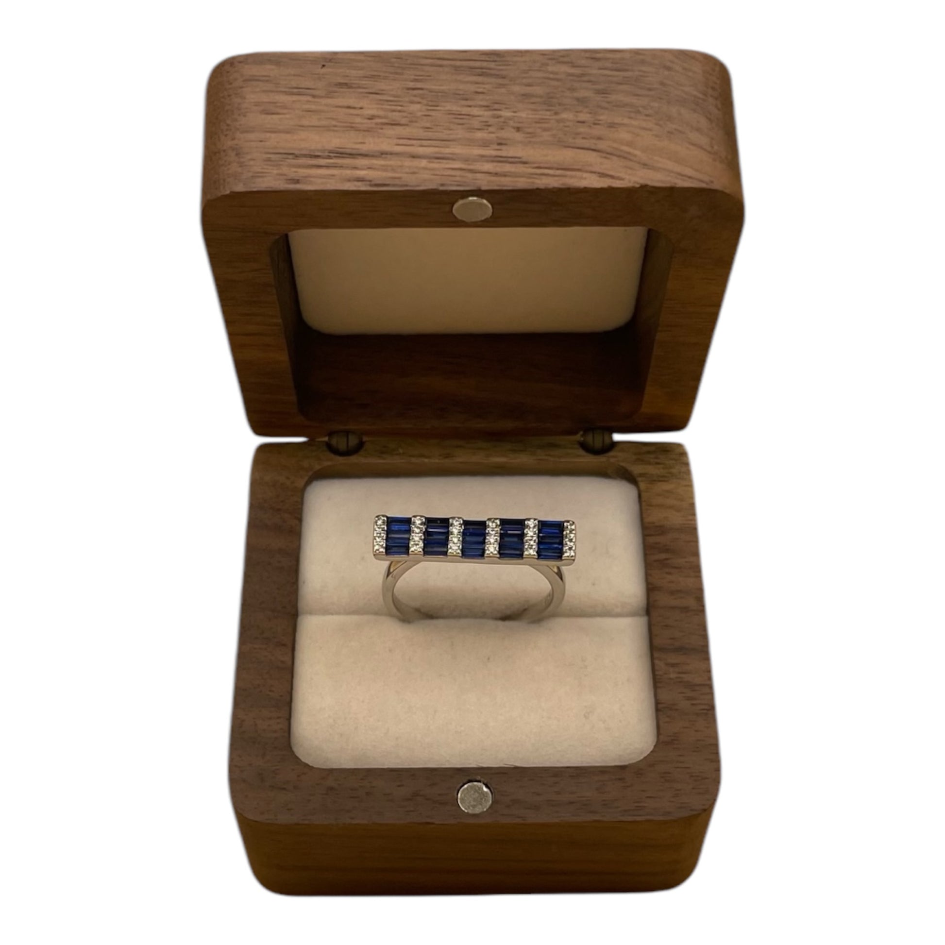 Anillo hermoso de zafiro azul llevando 3 lineas de total 0.15T y diamantes de 0.07CT
