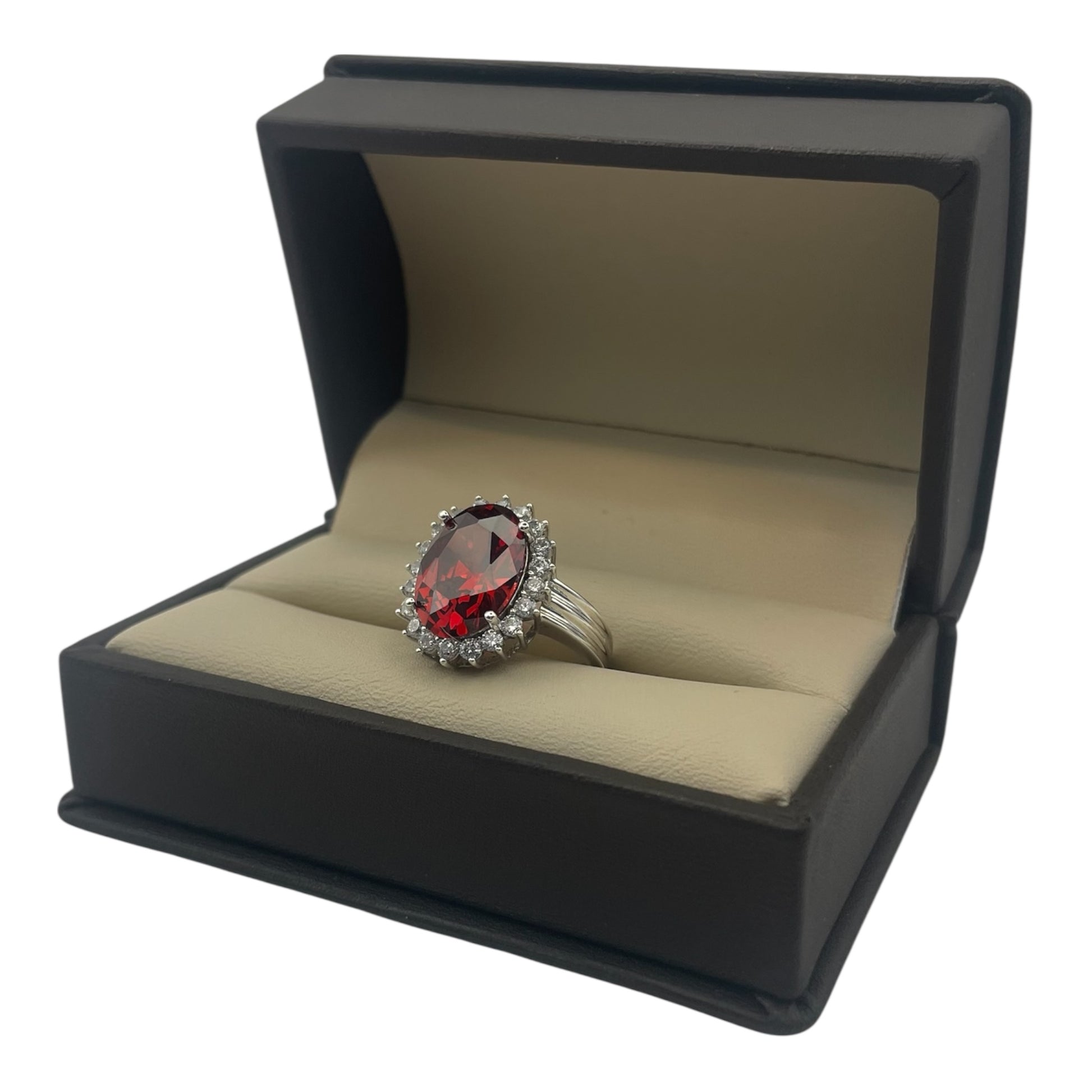 Observación — Anillo de granate y zafiros blancos